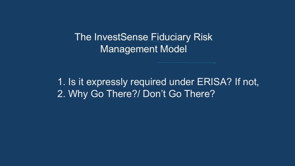 Plan sponsors often ask me what they can do to protect both themselves and their employees. There are no shortcuts to having a properly prepared forensic breakeven fiducairy prudence analysis performed, one that factors in both present value and mortality risk. As I tell my fiduciary risk management clients, the most effective risk management strategy is to avoid risk altogether, whenever possible. The InvestSense “KISS – Keep It Simple & Smart” “approach” is shown below.